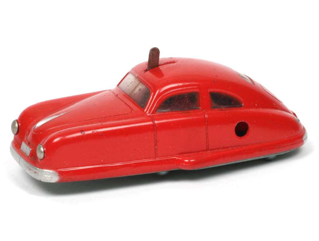 fait partie du garage 'MAGICO' de la marque - réalisation en plastique & tôle - moteur à clef (fonctionne, manette de frein à revoir) - quelques manques de peinture sur la carrosserie par endroits (principalement sur le toit) - une micro fêlure sur les pare-chocs