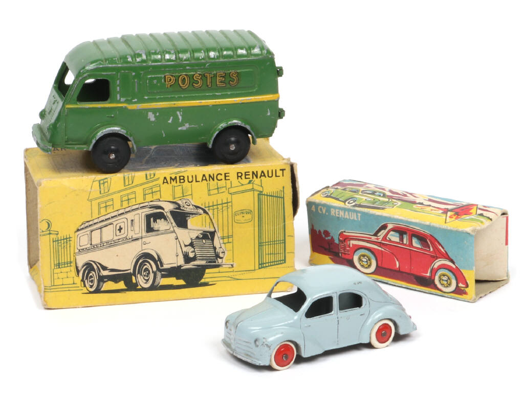 comprend les modèles : 4 cv (COULEUR RARE !) & GOELETTE 1000 Kg 'POSTES' (VERSION PEU COURANTE !) - pneus séchés - boites en états 'd'