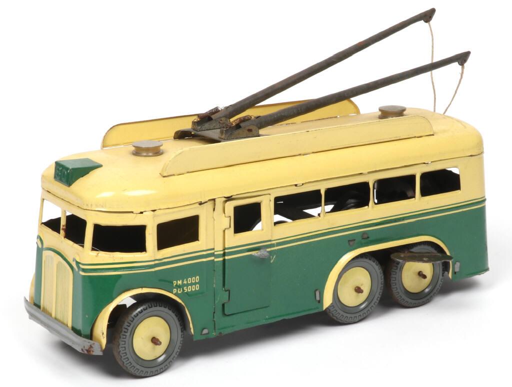 JOUSTRA (FRANCE) 442 Trolleybus mécanique en tôle lithographiée crème & vert