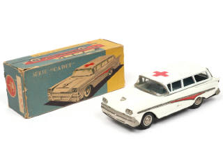 série 'CADET' - longueur : 20 cm - avec moteur à friction & bruiteur (fonctionnent) - baguettes latérales de caisse plus ou moins ternies - 2 éclats sur la portière conducteur - carrosserie légèrement encrassée