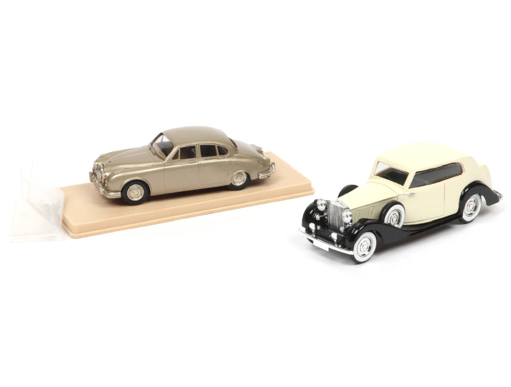 comprend : ROLLS ROYCE coupé James Young 1938 (base SOLIDO - sans boite) & JAGUAR MKII - sigles de calandres sous sachet - on y retrouve les marques : ELYSÉE & GRAND PRIX MODELS