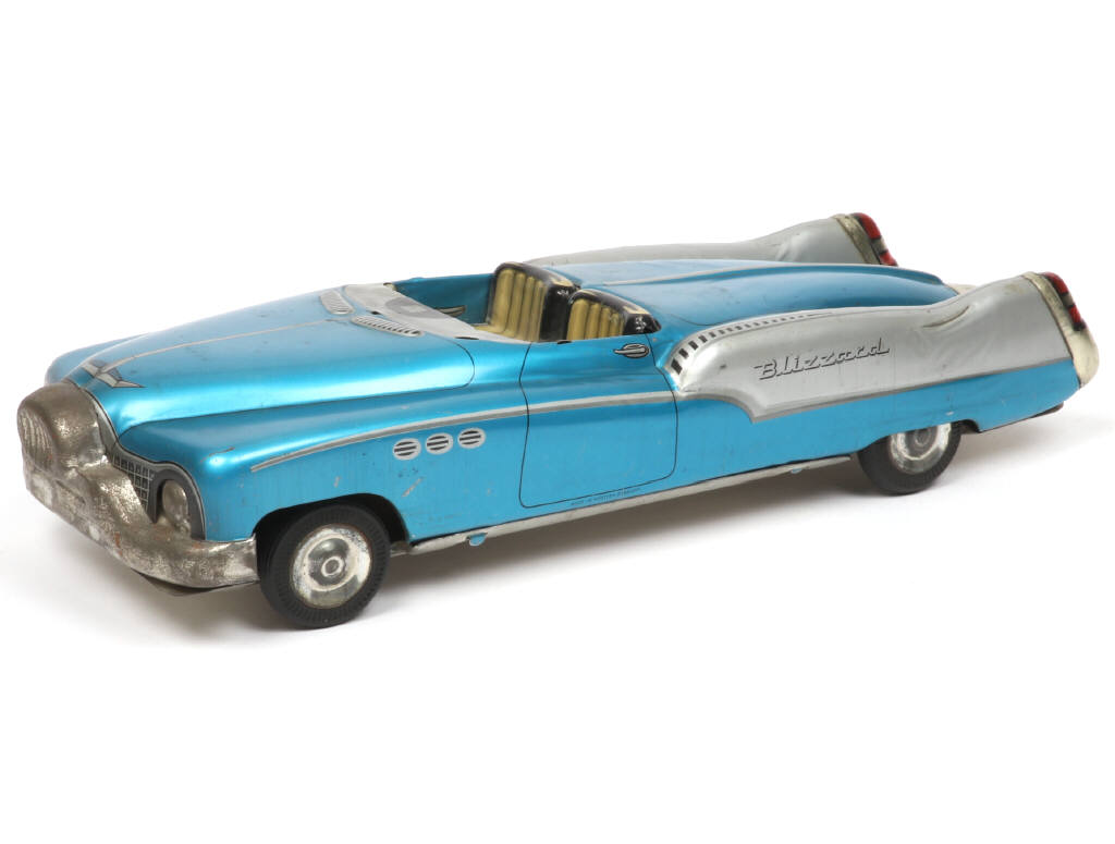 longueur : 35 cm - moteur à friction fonctionne - manque pare-brise, volant & conducteur - parties chromées plus ou moins ternies