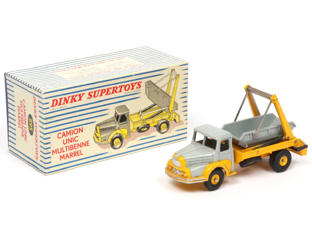 DINKY TOYS (FRANCE) 895 UNIC Multibenne MARREL (version avec jantes concaves) jaune d'or & gris