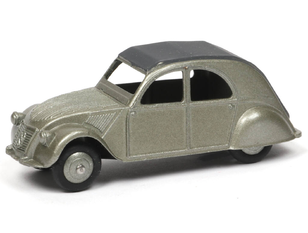 DINKY TOYS (FRANCE) 24T CITROËN 2CV (version avec un feu arrière) gris métal doré, axe de roues arrière non maté (type 1)