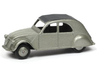 DINKY TOYS (FRANCE) 24T CITROËN 2CV (version avec un feu arrière) gris métal doré, axe de roues arrière maté (type 2)
