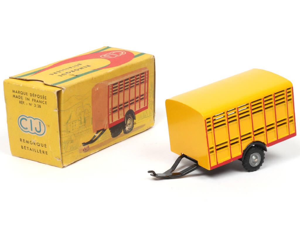 C.I.J. (FRANCE) 3/28 Remorque-bétaillère jaune d'or & rouge