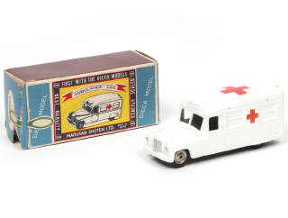 il s'agit de la copie japonaise du modèle DINKY TOYS GB - jantes, pneus & plancher spécifiques à la marque nipponne - légère altération de la peinture rouge sur les croix - un rabat de boîte incomplet
