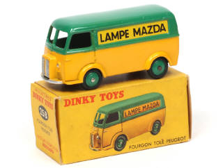 DINKY TOYS (FRANCE) 25B PEUGEOT D3A 'LAMPE MAZDA' vert & jaune