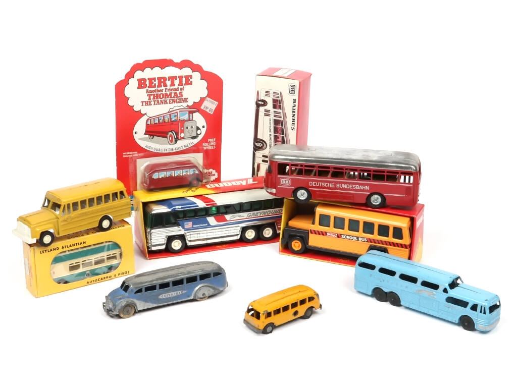 un modèle avec moteur à friction fonctionnel & un à clef à revoir - on y retrouve notamment les marques : TOOTSIETOYS, METOSUL, BUDDY L, CKO & ERTL - boites en états 'b' à 'd'