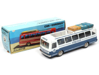 longueur : 38 cm - avec moteur à friction, essuie-glaces mobiles actionnés par les roues avant (fonctionnent), toit ouvrant & 4 bagages en carton - accrocs sur la boîte