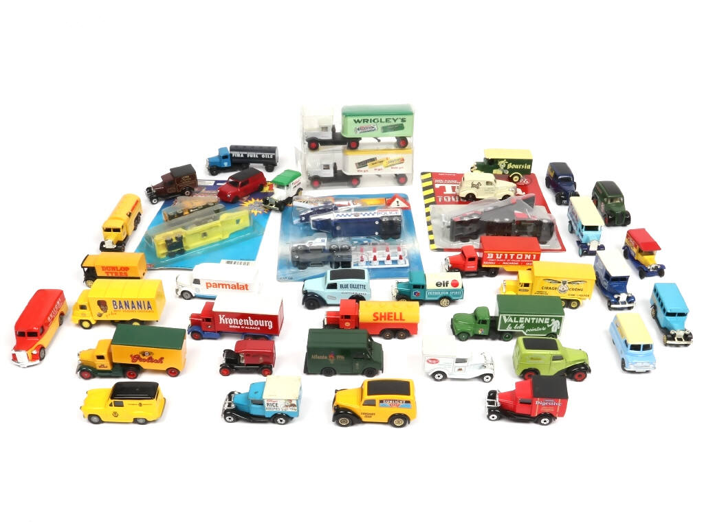 comprend notamment les modèles : BEDFORD, SCAMMEL, CITROEN, MORRIS & MACK - on y retrouve notamment les marques : EFSI, LLEDO, TONKA, MATCHBOX & CORGI - avec manques, parties cassées & oxydées