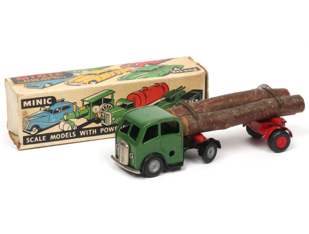 TRI-ANG-MINIC (GB) 74M Camion semi-remorque porte-grumes vert, rouge & noir