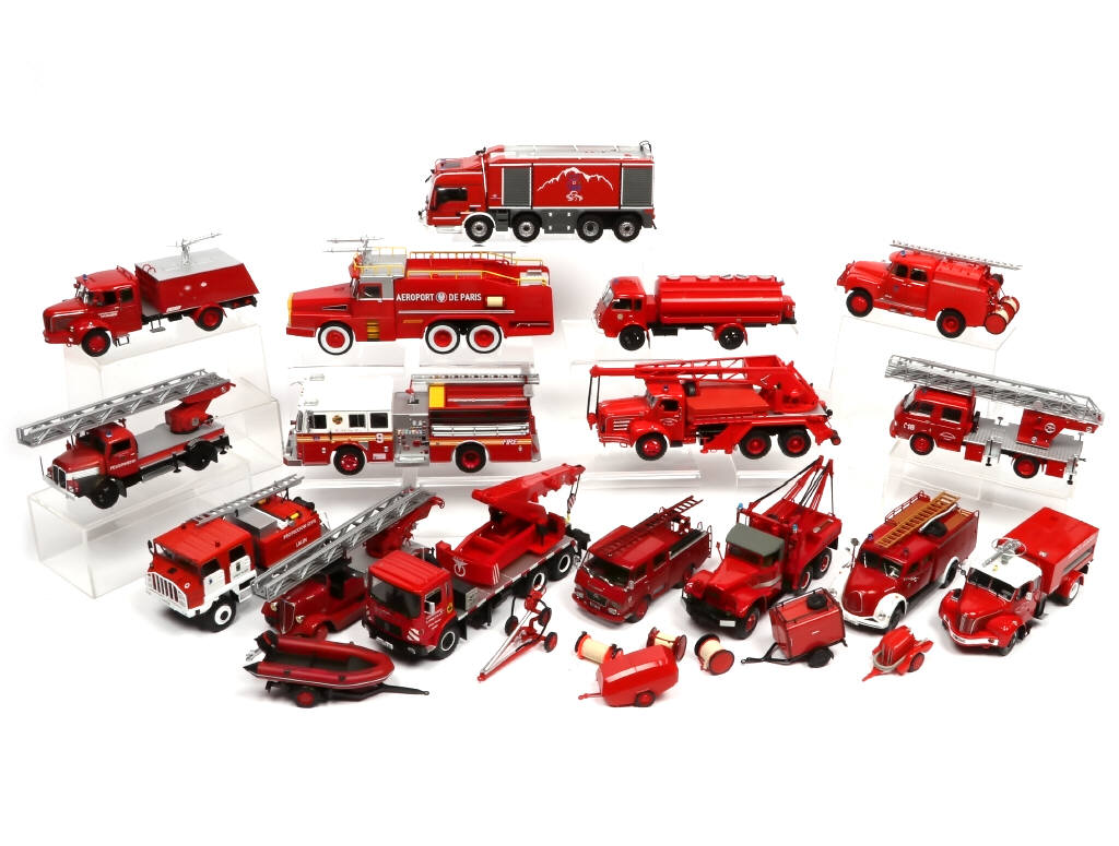 comprend notamment les modèles : SAVIEM, CITROËN, DROUVILLE & WILLIEME - on y retrouve notamment : grande échelle, grue et véhicule de lutte contre l'incendie - possibilité de petits manques & parties cassées