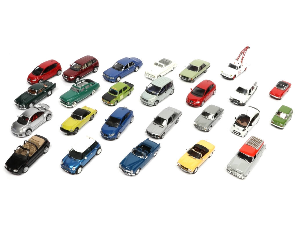 comprend notamment les marques : MINICHAMPS, SOLIDO & NOREV - on y retrouve notamment les modèles : PEUGEOT 304, FORD VEDETTE, SEAT 131 & FAIT 126 - possibilité de petits manques & parties cassées