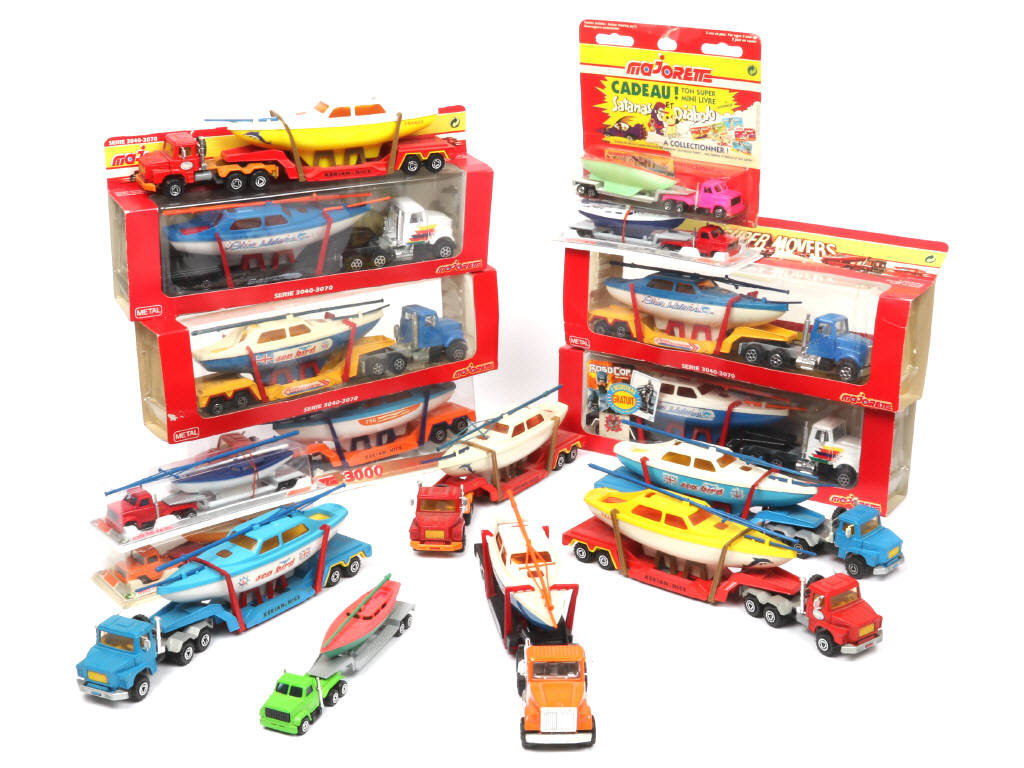 MAJORETTE (FRANCE) Ensemble de 16 camions semi-remorques transport de bateaux