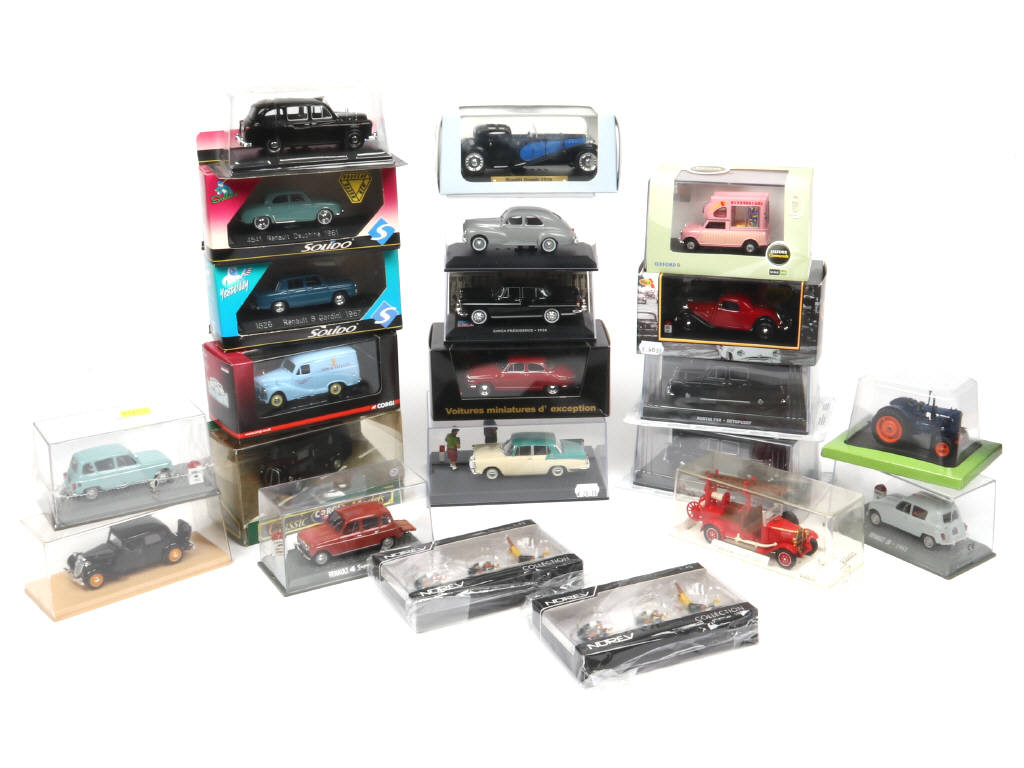 comprend les modèles : RENAULT, CITROEN, SIMCA, AUSTIN (série 007) & FORDSON - on y retrouve notamment les marques : SOLIDO, NOSTALGIE, CORGI, OXFORD & NOREV