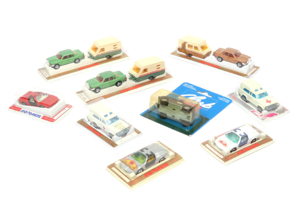 MAJORETTE (FRANCE) Ensemble de 9 véhicules & 3 caravanes