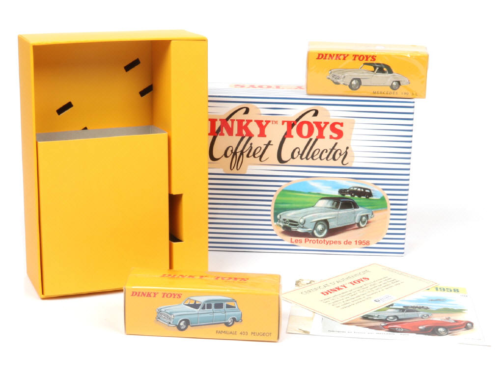 modèles jamais déballés (états supposés) - contient : MERCEDES 190SL & PEUGEOT 403 U5 - avec certificat d'authenticité & fascicule
