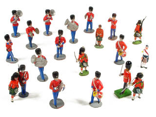 FIGURINES DIVERSES Ensemble de 12 musiciens britannique de fanfare rouge & bleu