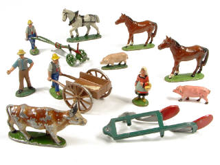 états de 'C' à 'E' - comprend : 3 fermiers, une gamine, 3 chevaux, une vache, 2 cochons, une charrette à bras, une charrue à un soc & une charrue bisoc