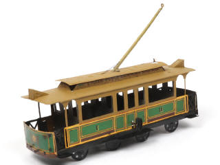 longueur : 34cm - moteur à ressort (fonctionne) - fabrication du début du XXème siècle - quelques parties non repeintes - petits manques avec quelques éléments plus ou moins déformés & coupés