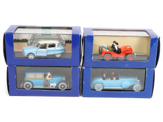collection TINTIN - comprend notamment les modèles : La JEEP rouge de TINTIN au PAYS de l'Or noir & La LINCOLN TORPEDO des Cigares du Pharaon