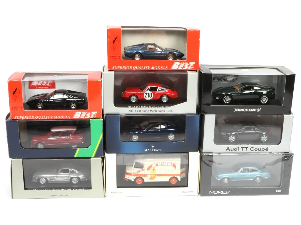 comprend notamment les marques : NOREV, MINICHAMPS, ELIGOR & BEST MODDEL - on y retrouve notamment les modèles : PORSCHE 911 T, ASTON MARTIN V12 VANQUISH & AUDI TT Coupé