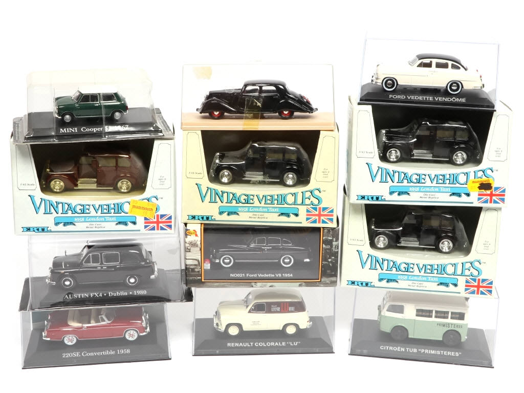 comprend notamment les modèles : AUSTIN FX4, RENAULT COLORALE & CITROËN TUB - boîtes en états 'b' à 'c'