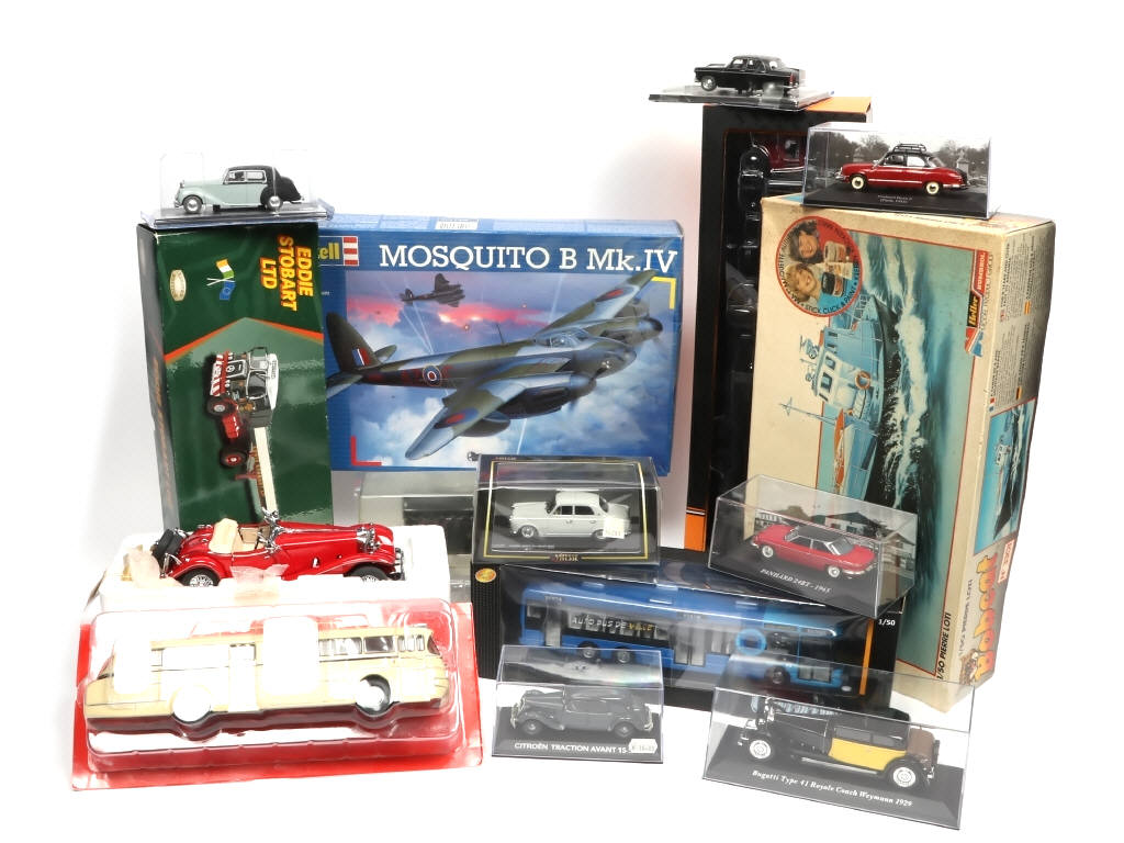 différentes échelles - comprend notamment les marques : VITESSE, HELLER, REVELL & CORGI - on y retrouve : un avion (maquette jamais montée), un bateau (maquette partiellemnt montée), bus & voitures - boîtes en 'b' à 'c'