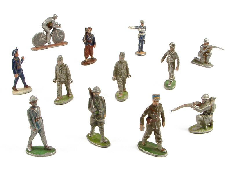 états de 'D' à 'E' - comprend : 2 brancardiers, un tireur accroupi, un chasseur alpin, un zouave, un officier des tirailleurs marocains & 3 soldats au défilé - on y joint un tireur accroupi de marque inconnue - quelques petits manques