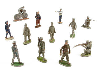 QUIRALU (FRANCE) Ensemble de 9 soldats, un agent de la circulation & un cycliste