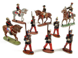 QUIRALU (FRANCE) Ensemble de 4 cavaliers à cheval & 5 figurines