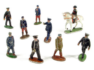 états de 'E' à 'R' - comprend : un polytechnicien à cheval, un officier des commandos de marine, un officier des fusiliers marins, un officier de marine avec sabre sur l'épaule, un chasseur au défilé, un légionnaire, 2 porte-étendards (manque étendards) & un officier des zouaves