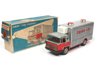 longueur : 37 cm - version avec marquage 'FRICO-LUX' sur les côtés de fourgon - avec moteur à clef (à revoir), aérateurs (fonctionnent, manque courroie d'entraînement) & 3 portes ouvrantes - quelques traces d'oxydation par endroits (notamment sur 2 enjoliveurs de roues) - entourage de calandre terni - boîte de la référence 647