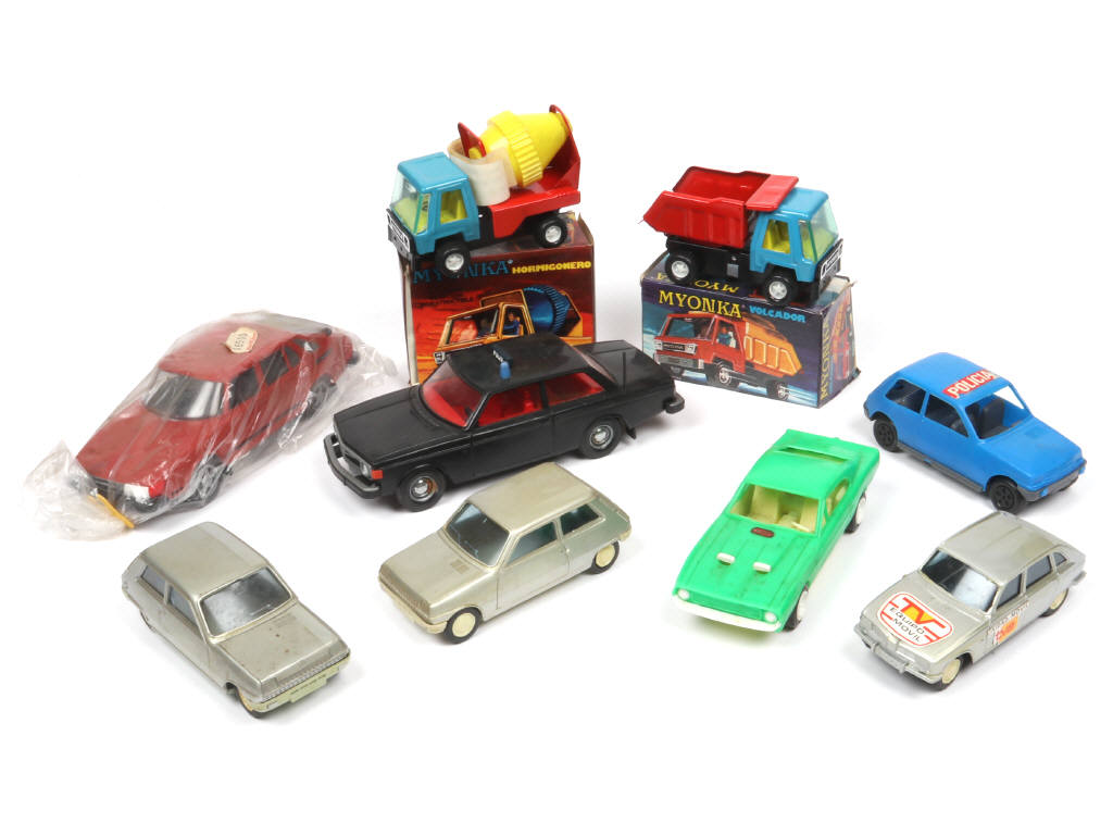 différentes compositions - longueur de la plus grande 23 cm - comprend notamment les modèles : RENAULT, SAAB & VOLVO - on y retrouve les marques : JALBE, MYONKA, PLASTICA ALBACETE & STAHLBERG - 3 exemplaires avec moteur à friction (fonctionnent) - légers manques