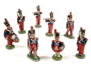 états de 'D' à 'E' - comprend : une cantinière, un tambour, 2 fifres & 4 soldats au 'présentez armes'
