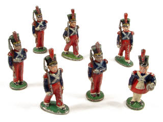états de 'D' à 'E' - comprend : une cantinière, un soldat sabre sur l'épaule & 5 soldats au 'présentez armes'