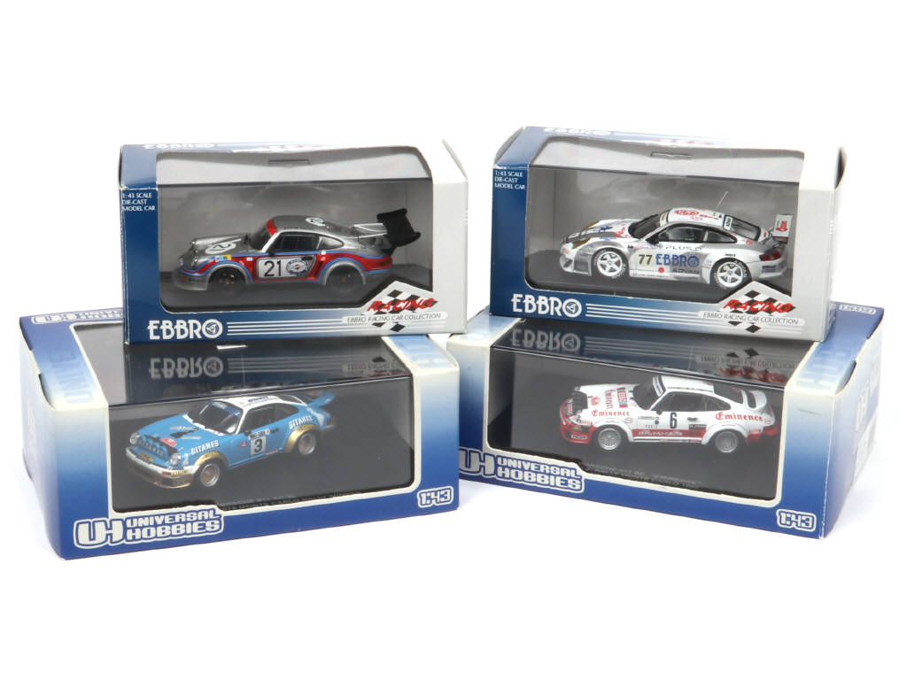 2 exemplaires Le Mans & 2 autres du rallye Monte Carlo - comprend les modèles : RSR turbo, SC 3L, 'EMINENCE' & GT3 RSR - on y retrouve les marques : EBBRO & UNIVERSAL HOBBIES