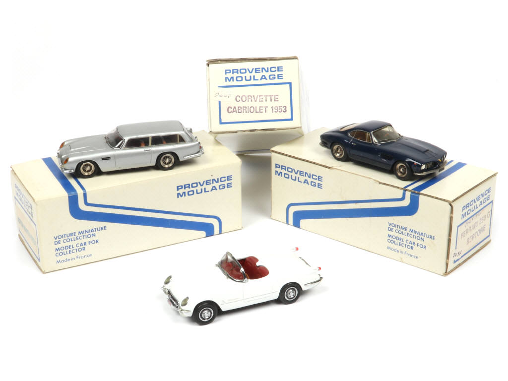comprend : ASTON MARTIN break, CHEVROLET CORVETTE cabriolet 1963 & FERRARI 250 GT BERTONE