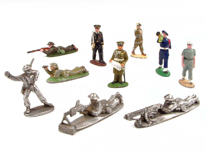 états de 'D' à 'R' - comprend : un chasseur alpin au défilé, 2 mitrailleurs anglais (un embout de fusil mitrailleur cassé), un légionnaire porte-étendard (manque étendard), un légionnaire, un grenadier anglais, un officier de marine sabre au clair (sabre non d'origine), un observateur anglais, un fantassin anglais & le général Gort