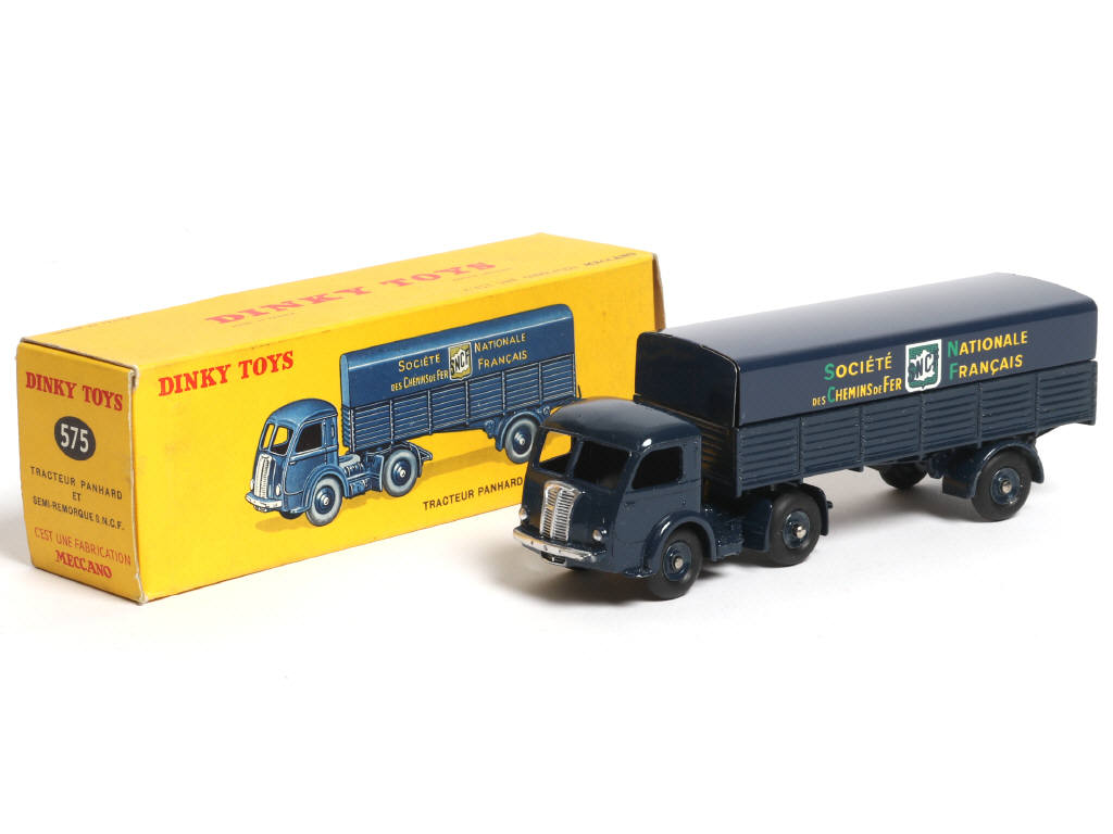 DINKY TOYS (FRANCE) 575 PANHARD Semi-remorque 'S.N.C.F' (version avec jantes concaves) bleu foncé (fond de l'écusson quadrillé)