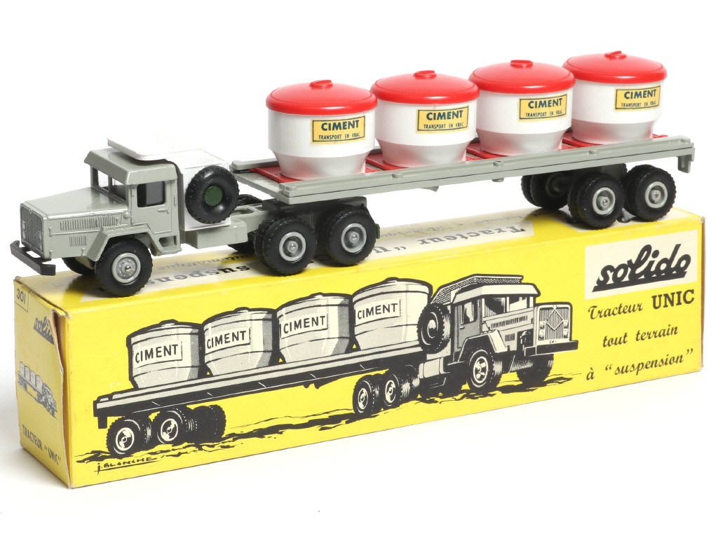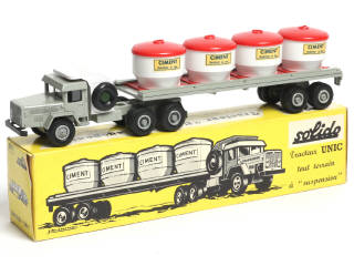 SOLIDO (FRANCE) 301 UNIC Semi-remorque plateau transport de ciment gris & blanc