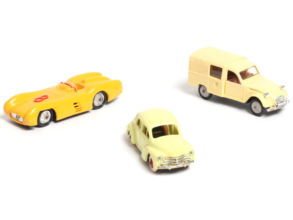 comprend : RENAULT 4CV, MERCEDES de compétition & CITROËN 3CV fourgonnette - carrosseries très légèrement déformées par endroits