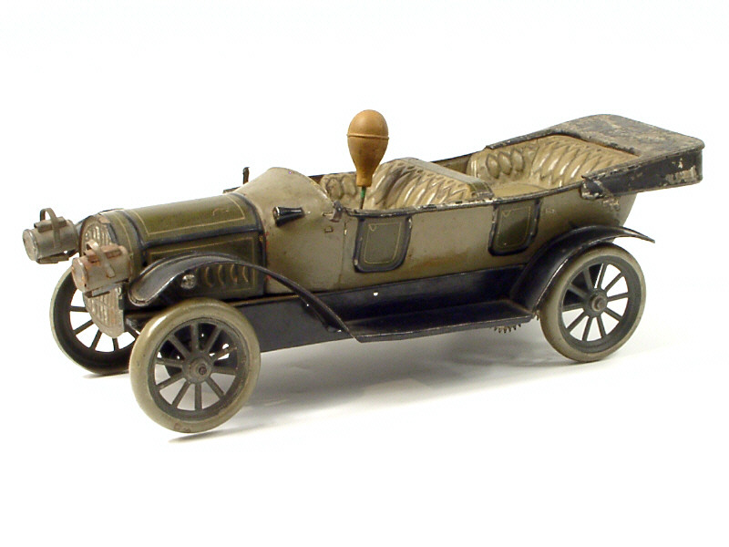 longueur 33,5 cm - en tôle - moteur à ressort (fonctionne) - avec direction & strapontins - avec manques - 33.5 cm long - tinplate - clockwork mechanism (in working condition) - with steering & folding seats - small parts missing