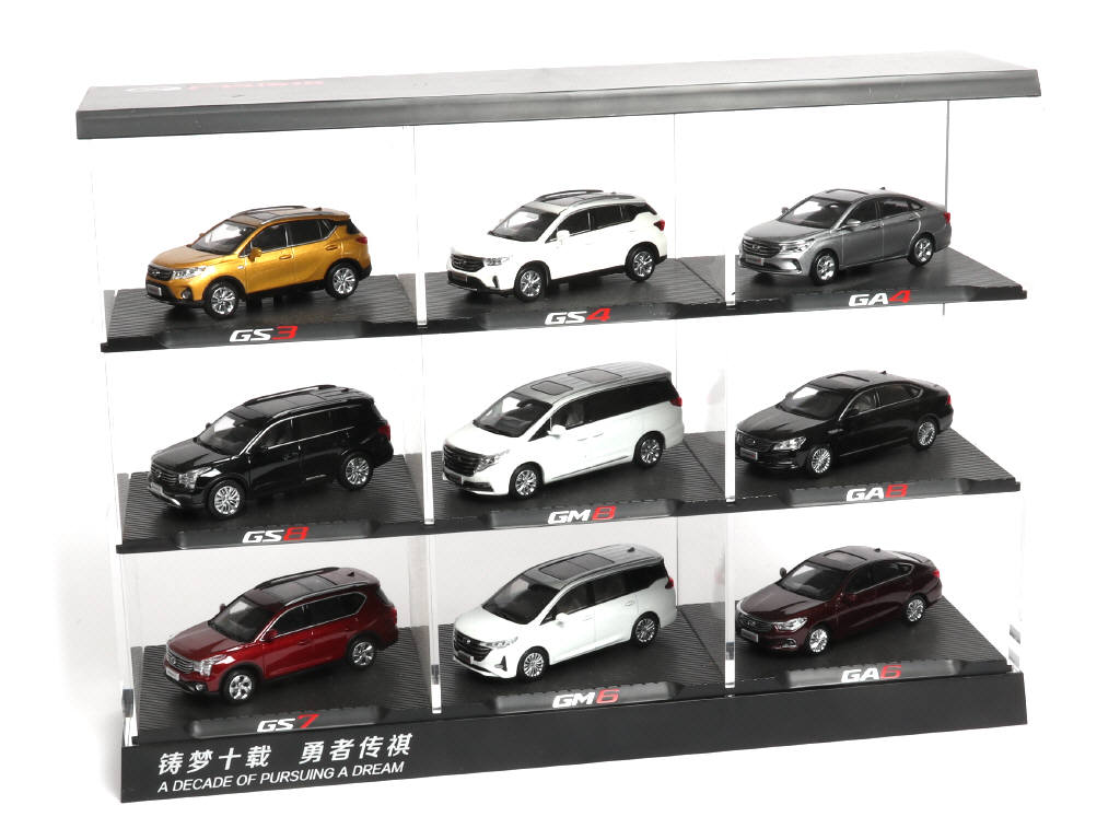 échelle : 1/43ème - ce présentoir de 9 modèles faisait parti des objets promotionnels visibles sur le stand du constructeur automobile chinois au salon de Paris 2019