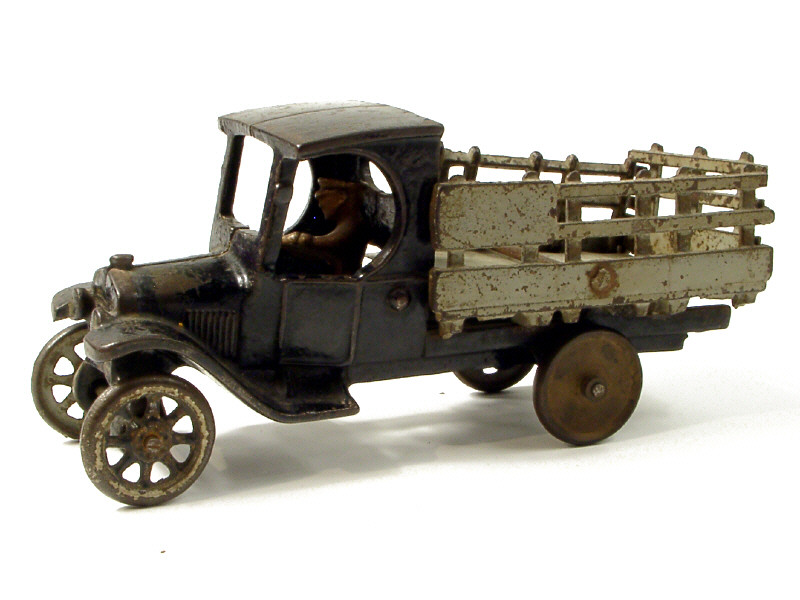 longueur 22,5 cm - en fonte - manque une partie de ridelles & roue arrière gauche non d'origine - avec conducteur - 22.5 cm long - cast iron - part of the side panels missing & back left-hand wheel not original - with driver - SCARCE