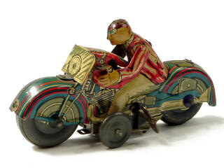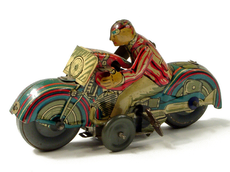 DIVERS (GB) Motocyclette avec pilote en tôle lithographiée bleu, blanc & rouge