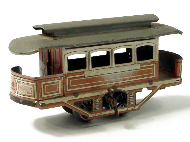 BING (ALLEMAGNE) Tramway en tôle lithographiée - Lithographed tinplate tramcar rouge, crème & gris