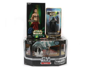 scellé - comprend : PRINCESS LEIA réf : 57137, DARTH VADER réf : 69700 & SLAVE 1 réf : 34512 - on y retrouve les marques HASBRO & KENNER - boites avec accrocs