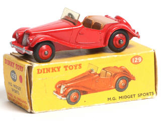 DINKY TOYS (GB) 129 MG MIDGET Sports rouge, intérieur caramel, jantes rouges